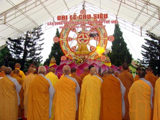 – Nguyện cho tất cả anh linh đó cùng sinh về nơi mà mọi loài đều yêu thương nhau đầm ấm thật lòng, cùng chia sẻ với nhau ánh sáng tâm linh giác ngộ cao siêu, cùng hưởng với nhau niềm phúc lạc an nhiên tự tại.