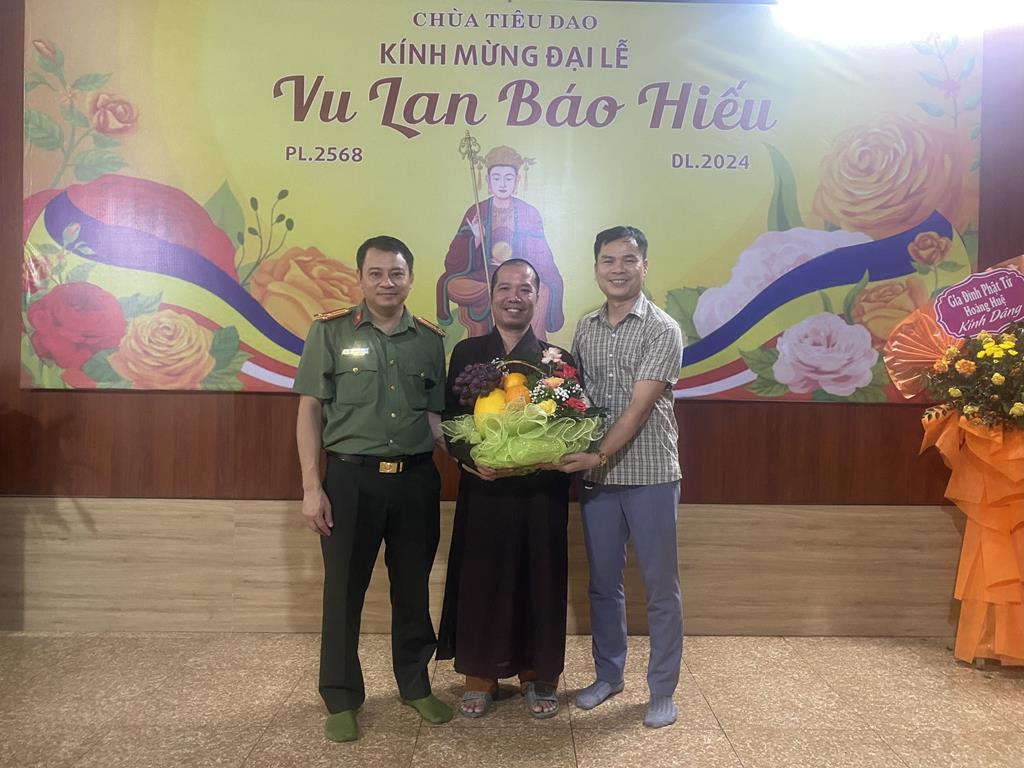 Sáng ngày 15 tháng 08 năm 2024 (nhằm ngày 12 tháng 07 năm Giáp Thìn), phái đoàn Ban Tôn giáo tỉnh Quảng Ninh do Ông: Bùi Đức Hưng – phó Trưởng ban Tôn giáo tỉnh Quảng Ninh làm Trưởng đoàn cùng các thành viên trong đoàn cũng đã đến thăm và chúc mừng Đại lễ Vu Lan Báo Hiếu. Phái đoàn phòng An ninh Nội địa Công an tỉnh Quảng Ninh dưới sự hướng dẫn của Thượng Tá: Bùi Anh Tuấn: phó Trưởng phòng An ninh Nội địa Công an tỉnh Quảng Ninh và thành viên đoàn đã đến chùa Tiêu Dao thăm, chúc mừng Đại lễ Vu Lan Báo Hiếu đến Đại Đức: Thích Tâm Tịnh – ủy viên Ban trị sự GHPGVN tỉnh Quảng Ninh – Trụ trì chùa Tiêu Dao.