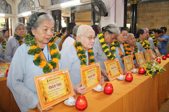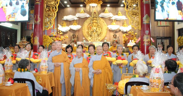 Năm nay, Đạo tràng tổ chức chúc thọ cho 75 Phật tử ở ngưỡng tuổi 60, 65, 70, 75, 80 và trên 80 tuổi