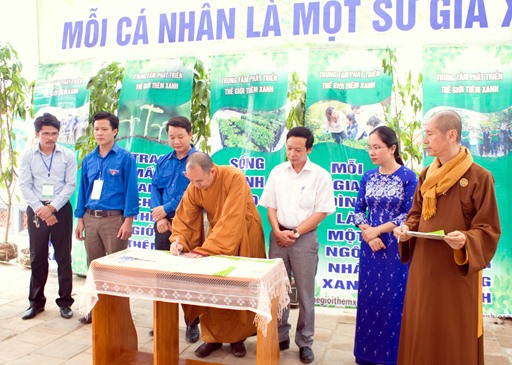 Được biết, cùng ngày, vào lúc 14h00”, tại chùa Hoằng Phúc cùng với Lễ bế mạc cung nghinh Phật ngọc cho hòa bình thế giới thì Trung tâm Phát triển Thế giới thêm xanh đã tổ chức Lễ phát động trồng 125 cây hoa ngọc lan tại chùa Hoằng Phúc (Lệ Thủy – Quảng Bình). Đây là chương trình cuối cùng kết thúc hành trình về nguồn trồng hoa ngọc lan tại các di tích lịch sử, đền, chùa ở 5 tỉnh, thành phố: Thanh Hóa, Nghệ An, Hà Tĩnh, Quảng Bình, Quảng Trị.
