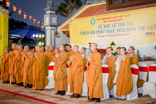 Tiếp theo, Thượng toạ TS Thích Đức Thiện – Tổng thư ký HĐTS GHPGVN phát biểu bế mạc. Trong lời bế mạc, một lần nữa Thượng toạ nêu lên ý nghĩa to lớn việc tôn trí tượng Phật ngọc hòa bình thế giới để đồng bào và Phật tử các giới tỉnh Quảng Bình lễ bái và chiêm ngưỡng. Và sau 10 ngày Phật Ngọc Hoà Bình Thế Giới tôn trí tại đây đã đem đến cho chùa Hoằng Phúc một năng lượng mới, một niềm tin và đem đến cho đồng bào Phật tử cùng nhân dân trong vùng một sự lạc quan vào đời sống, do họ được cơ hội tận mắt nhìn thấy, chiêm ngưỡng và đảnh lễ tượng Phật Ngọc và tham gia vào các chương trình tu học tâm linh, được lắng nghe những lời thuyết giảng của Chư tôn đức.