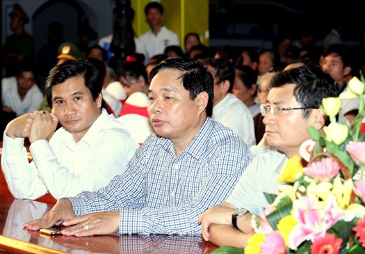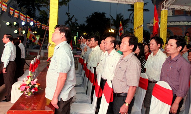 Sau nghi thức tuyên bố lý do, giới thiệu thành phần tham dự, tại buổi Lễ, ông Phạm Hữu Thảo – Chủ tịch UB MTTQ huyện Lệ Thuỷ đọc báo cáo tổng kết Lễ tôn trí tượng Phật Ngọc tại chùa Hoằng Phúc.