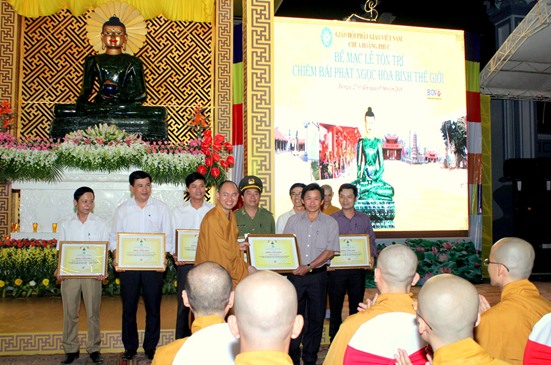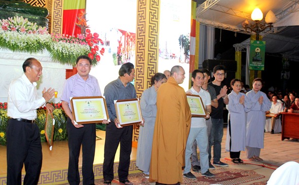 Và tại buổi Lễ, TT Thích Đức Thiện đã trao bằng tuyên dương công đức cho Chư tôn đức Tăng Ni, Phật tử, Chúng thanh niên Phật tử Phật Quang, chính quyền các cấp và các Doanh nghiệp.