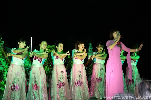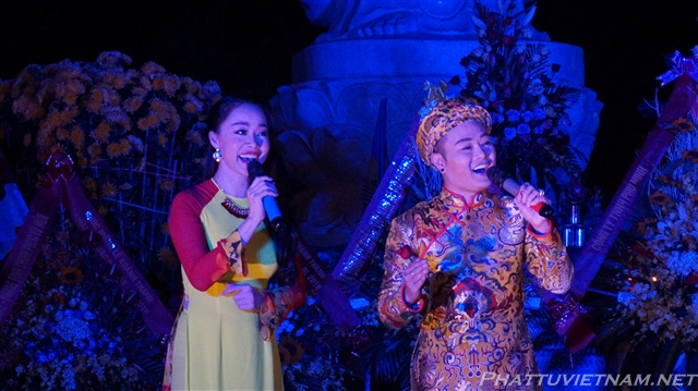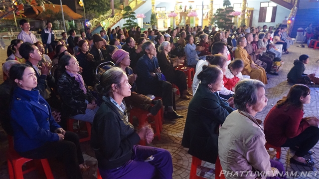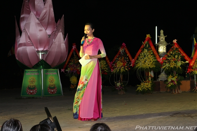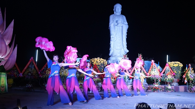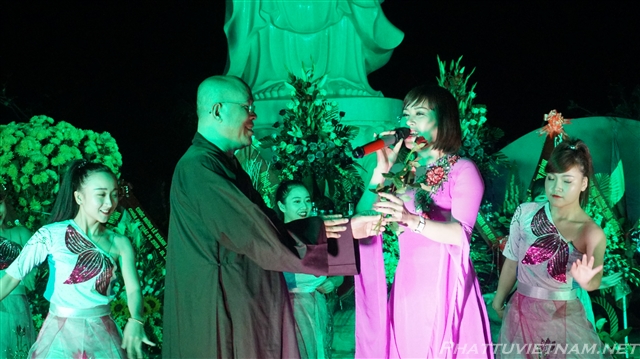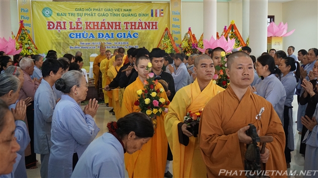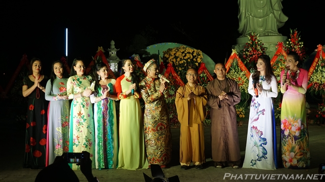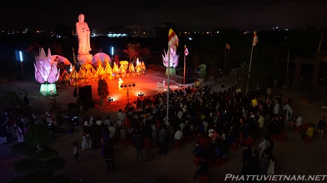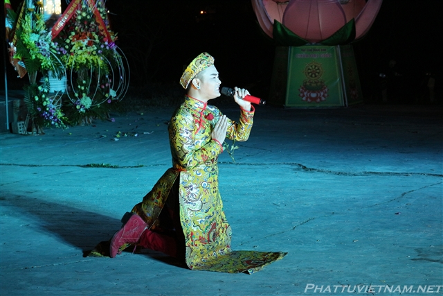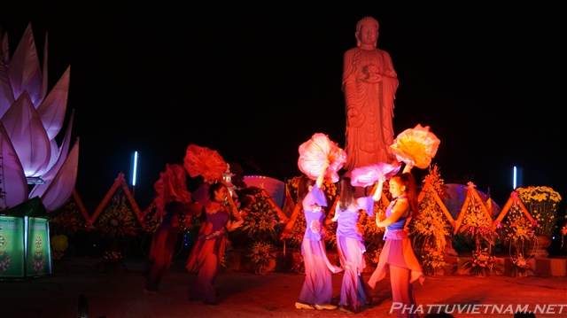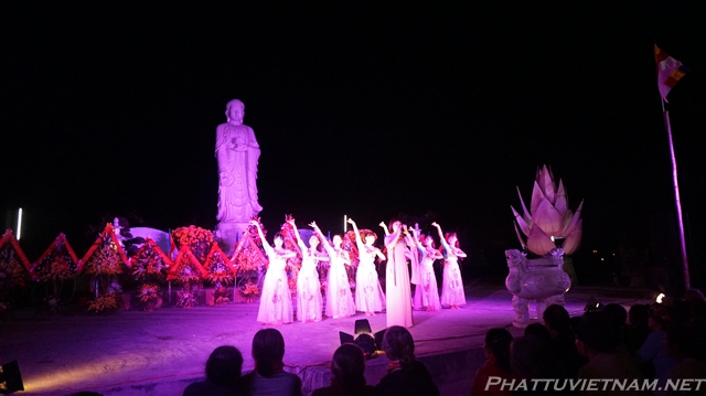 Buổi tối cùng ngày, dưới sự dẫn dắt của TT.Thích Nhật Từ – Trụ trì chùa Giác Ngộ (Q10, TP.HCM) và MC Ánh Ngọc, đoàn ca sĩ đến từ TP.HCM và các văn nghệ sĩ tỉnh Quảng Bình, Nghệ An đã biểu diễn các tiết mục văn nghệ Phật giáo quần chúng đặc sắc, hát mừng đại lễ khánh thành chùa Đại Giác – Trụ sở Ban trị sự GHPGVN tỉnh Quảng Bình.