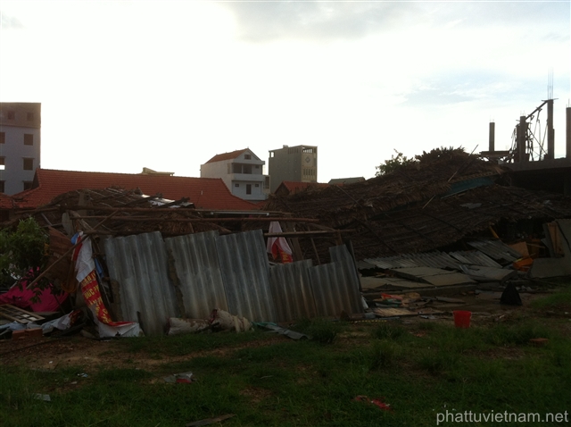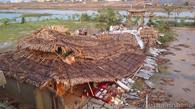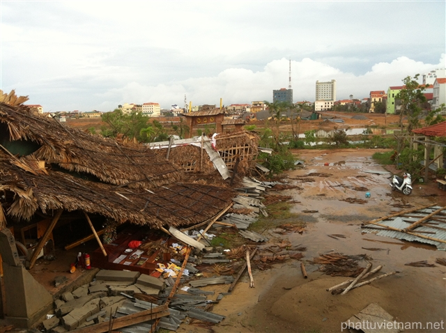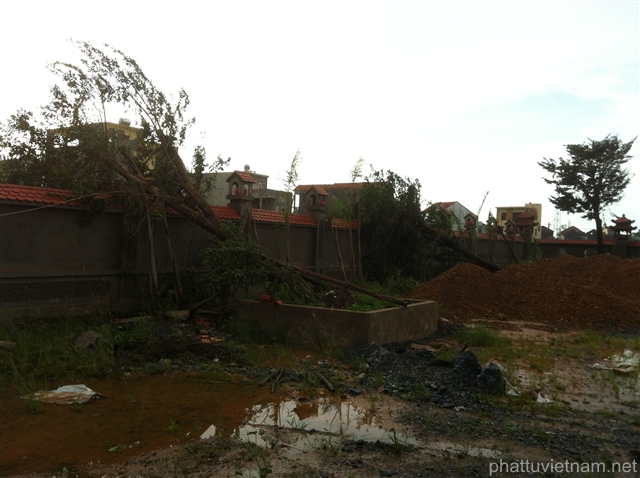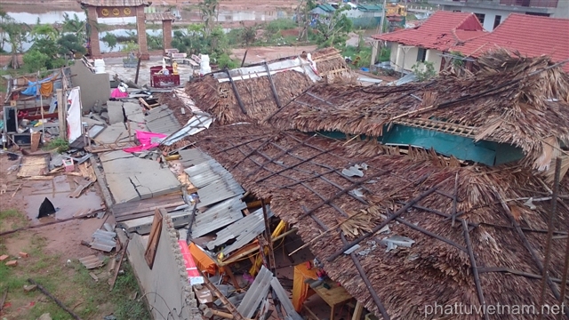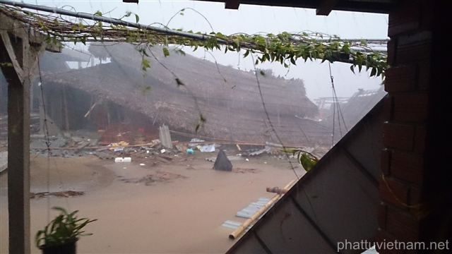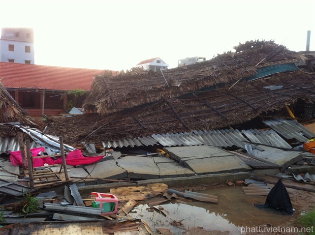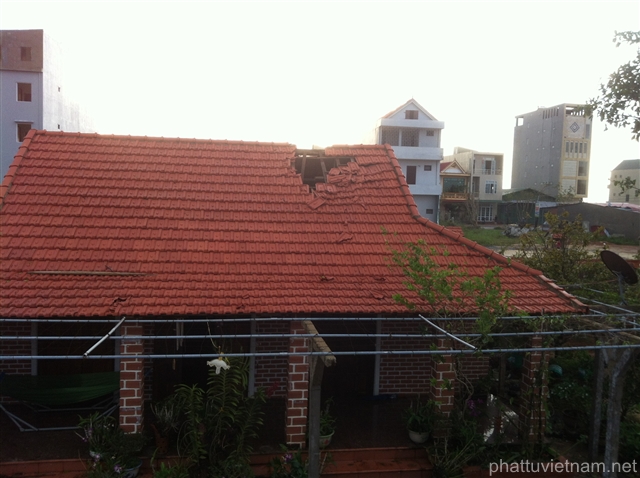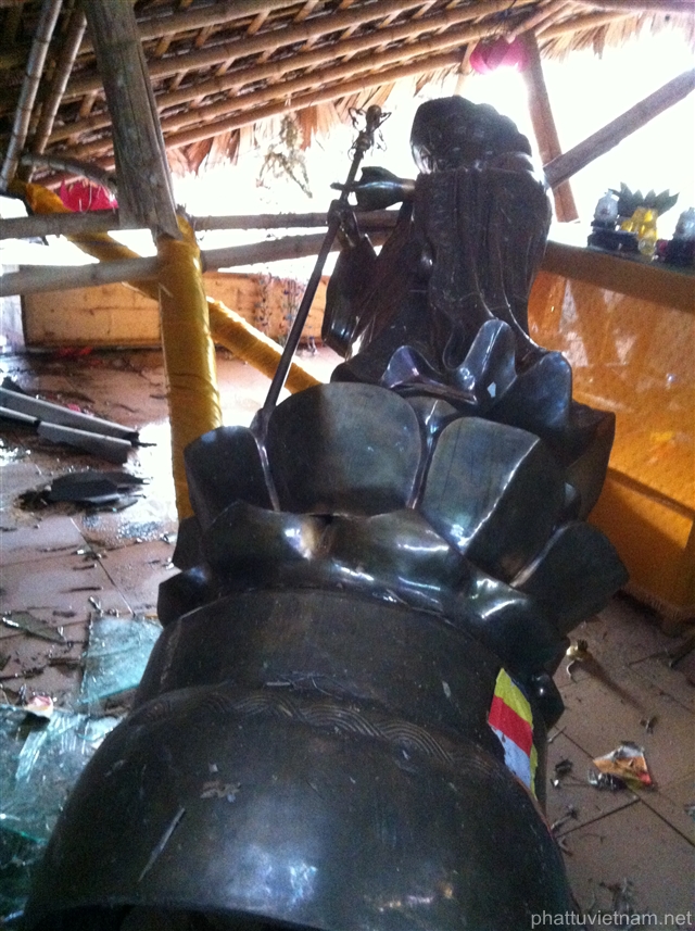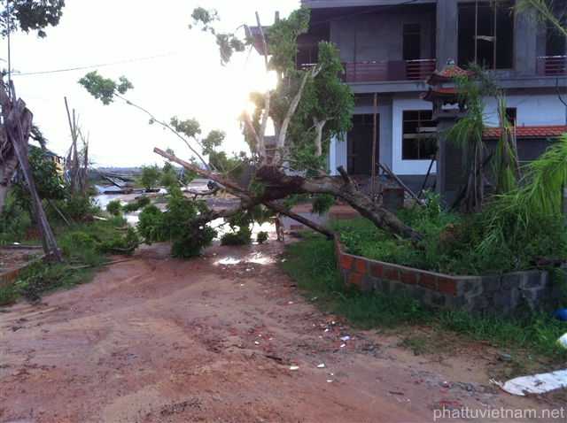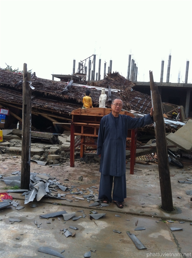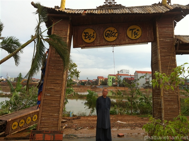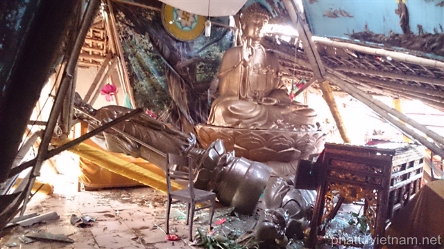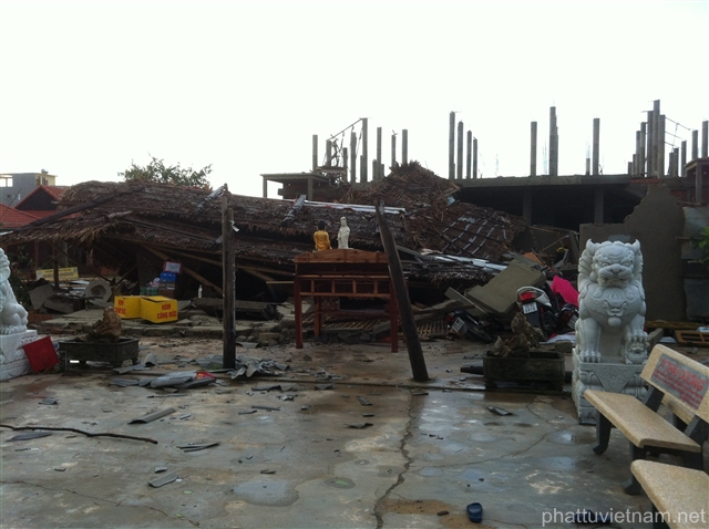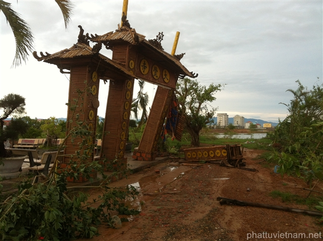 Trước hiện trạng chịu chung số phận này, Chùa Đại Giác – trụ sở Ban Trị sự Giáo hội Phật giáo Việt Nam tỉnh Quảng Bình, sau cơn cuồng phong bão tố cũng bị tan tác tiêu điều. Riêng chánh điện chính nơi thờ phượng Tam Bảo đã bị đổ sập, không thể chịu nổi với những cơn gió giật, rung lắc kéo dài, toàn bộ chùa đều bị hư hoại, thiệt hại lên đến hàng tỷ đồng. Điều đau xót nhất đó là các quyển kinh sách của chùa đều bị ướt hết. Nhìn những bước tường nhà bất ngờ đổ sập xuống nên ai nấy đều chạnh lòng. Do lực bất tòng tâm, không làm sao chống chọi nổi với cơn bão giằng xé, nên chỉ vội di chuyển được một vài ít đồ đạc. Tất cả đều tan hoang sau bão.