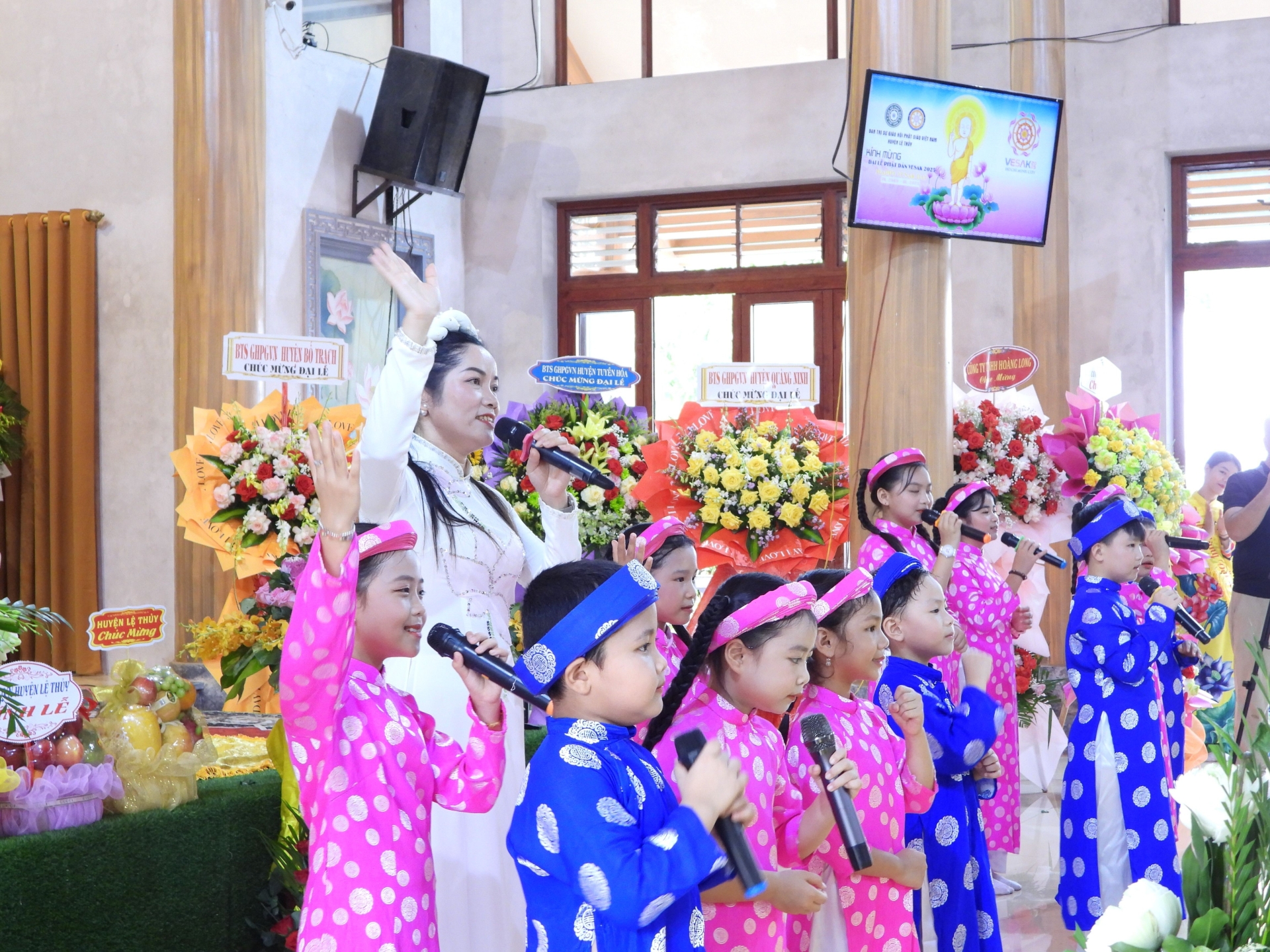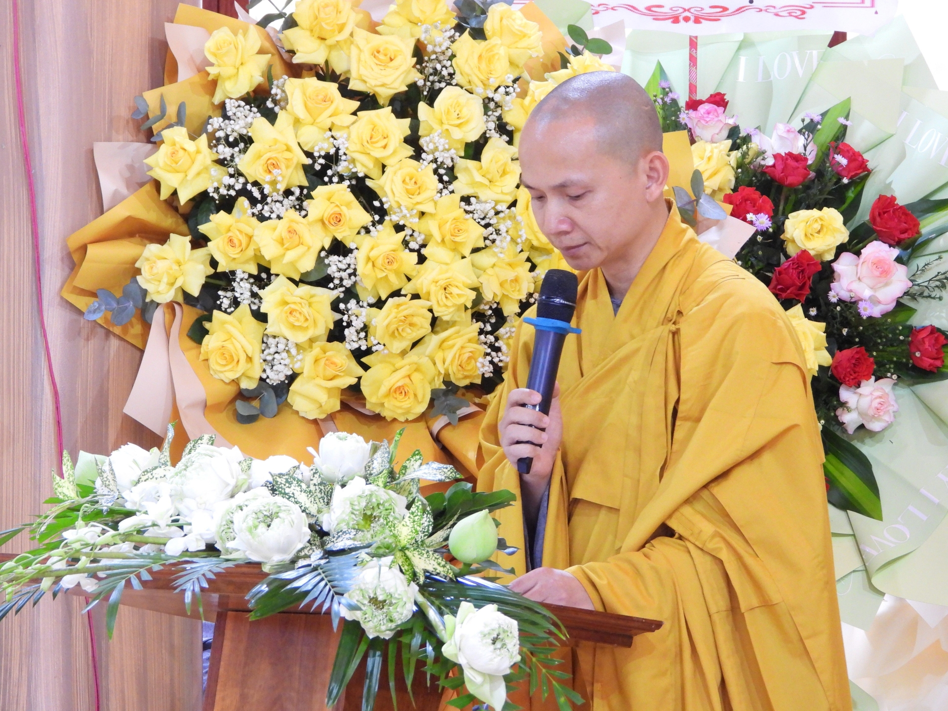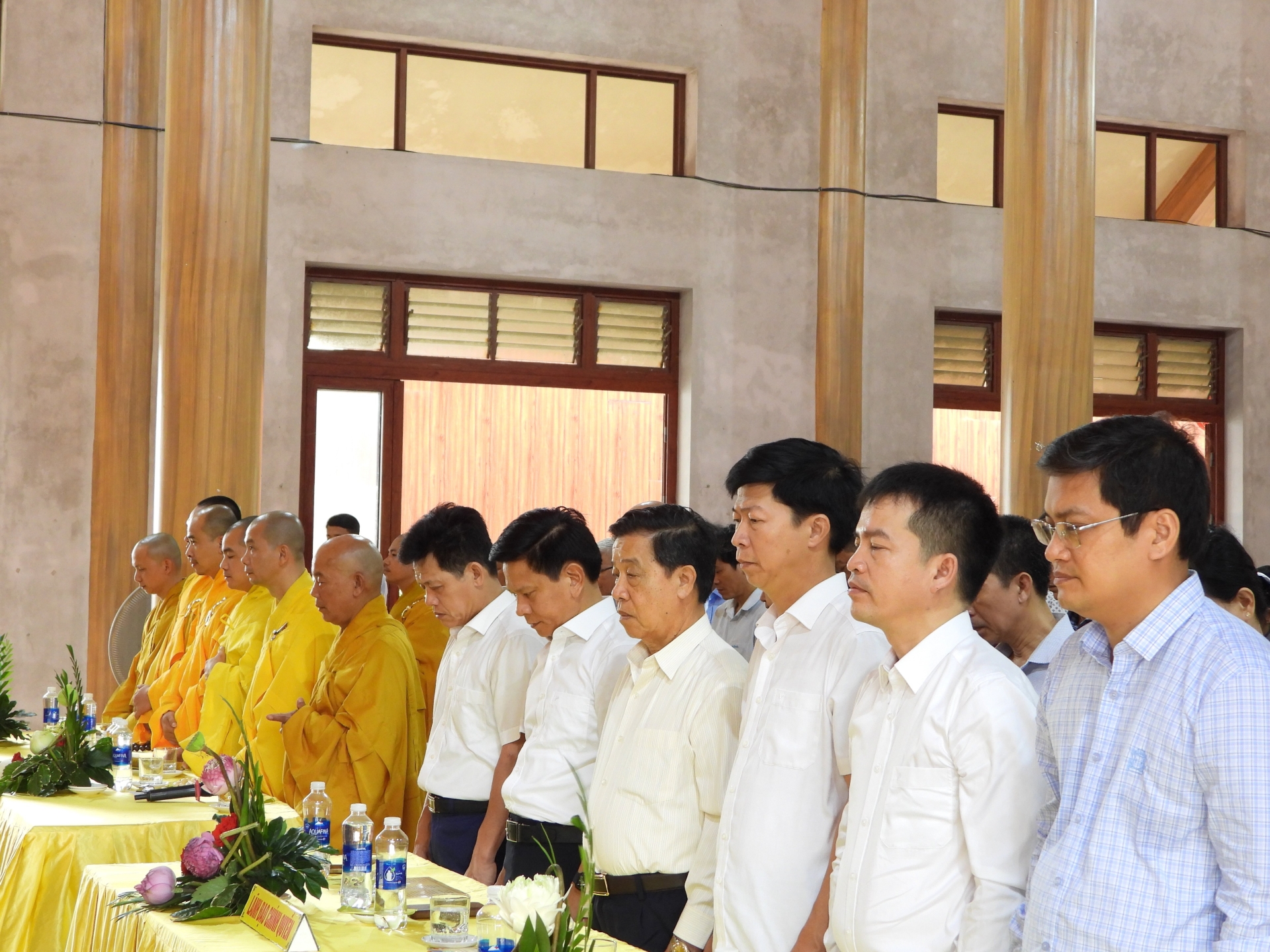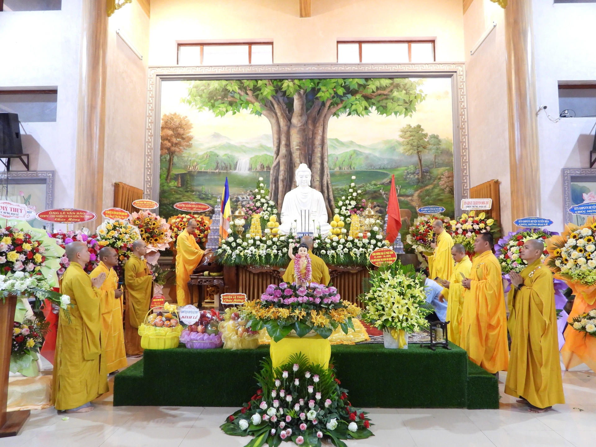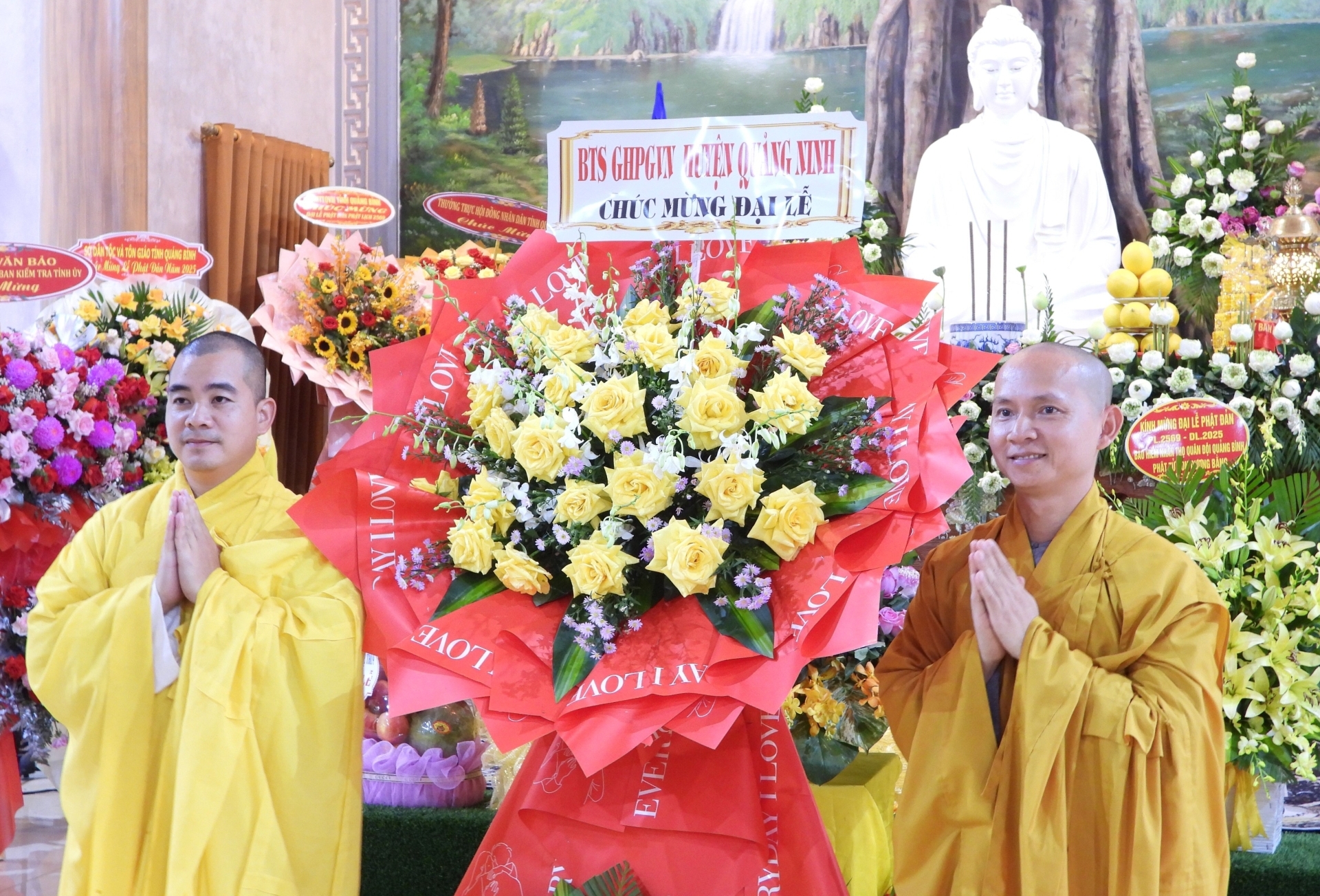 Trong không gian linh thiêng của buổi lễ, các đồng chí lãnh đạo tỉnh, huyện và đại diện các cơ quan, ban ngành cùng đại diện GHPGVN các huyện trên địa bàn tỉnh đã tặng những lẵng hoa và giỏ quả tươi thắm, thể hiện sự trân trọng đối với giá trị tinh thần và văn hóa mà Phật giáo mang lại cho đời sống xã hội. Sự hiện diện và chúc mừng của lãnh đạo các cấp không chỉ khẳng định vai trò đồng hành của chính quyền trong các hoạt động tôn giáo, mà còn góp phần củng cố khối đại đoàn kết toàn dân tộc trên nền tảng đạo lý, văn hóa và niềm tin nhân văn.