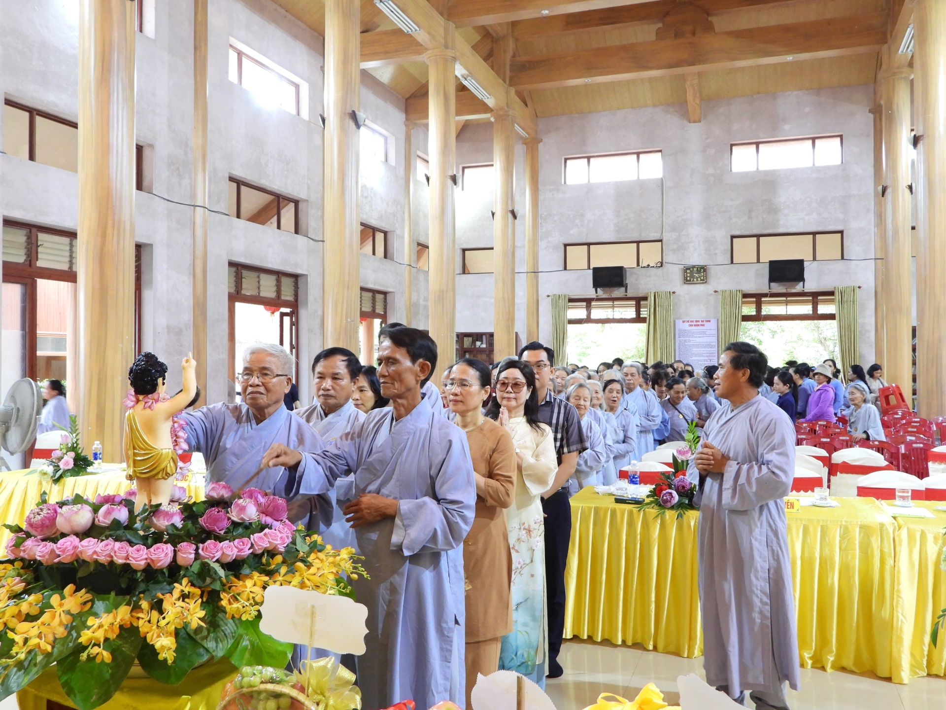 Khép lại chương trình là nghi thức cúng dường Đại lễ Phật đản, lễ Tắm Phật và lời cảm tạ của Ban Tổ chức, cùng nghi thức hồi hướng trang nghiêm, thành kính. Đại lễ Vesak 2025 tại chùa Hoằng Phúc đã để lại ấn tượng sâu sắc trong lòng người tham dự – không chỉ là dịp chiêm bái, tưởng niệm Đức Phật Thích Ca Mâu Ni, mà còn là cơ hội vun bồi lòng từ bi, sống thiện, sống tỉnh thức và lan tỏa yêu thương đến cộng đồng, đúng như tinh thần mà Vesak hướng tới: Quốc thái dân an – Thế giới hòa bình – Chúng sinh an lạc.