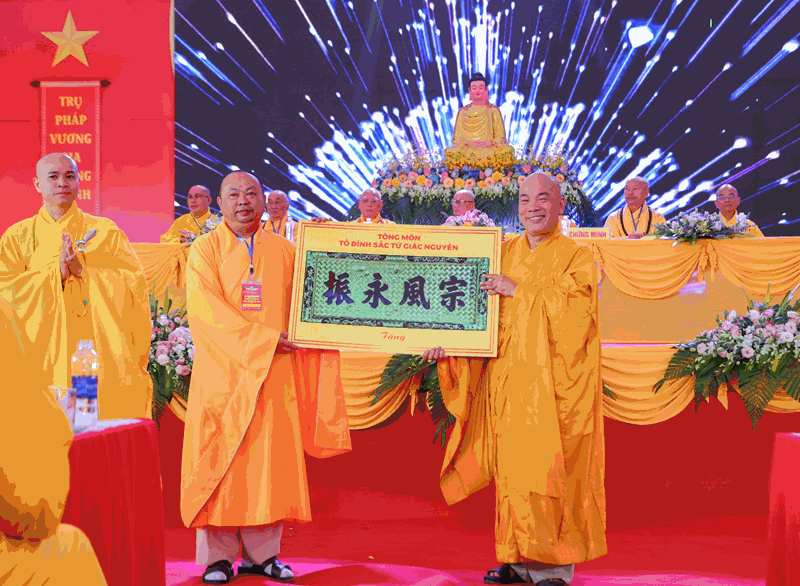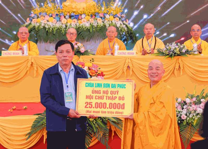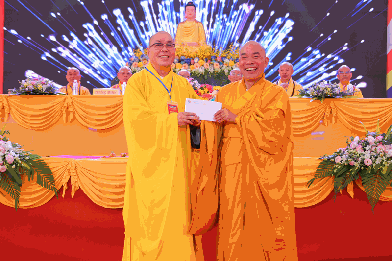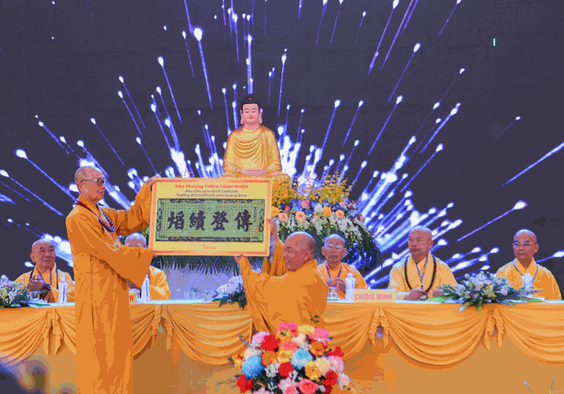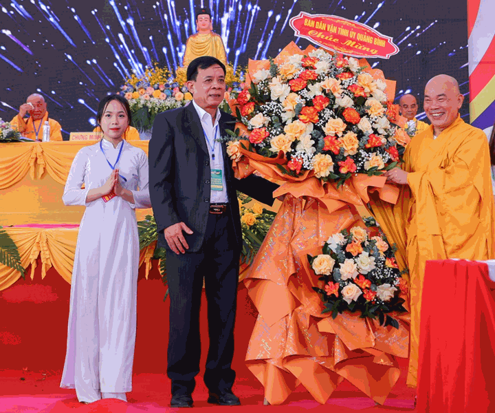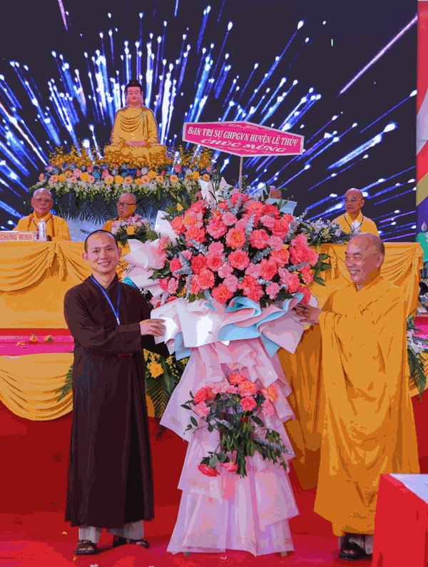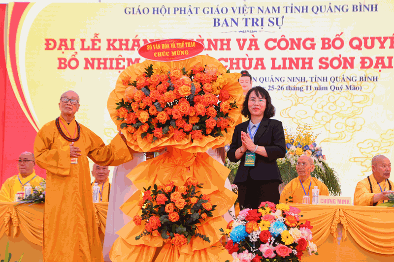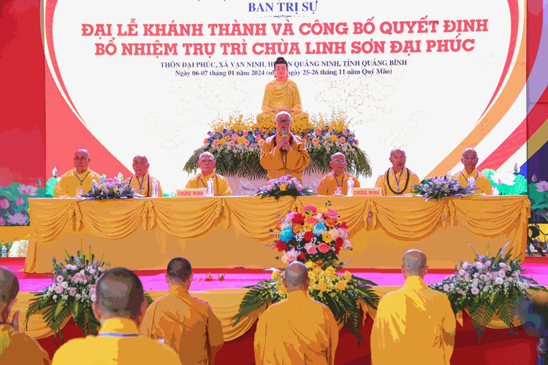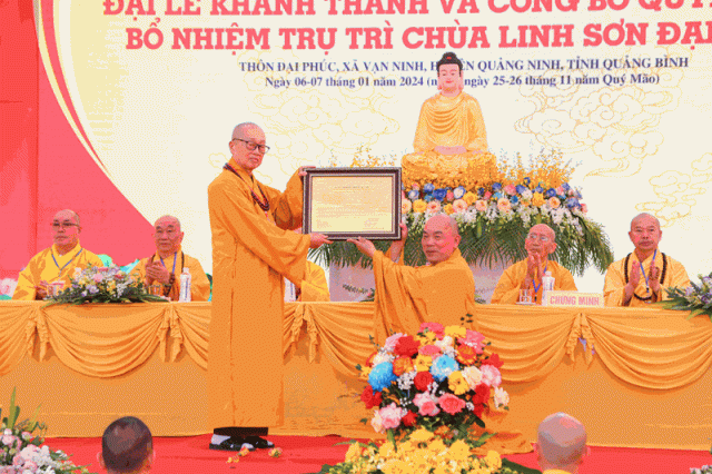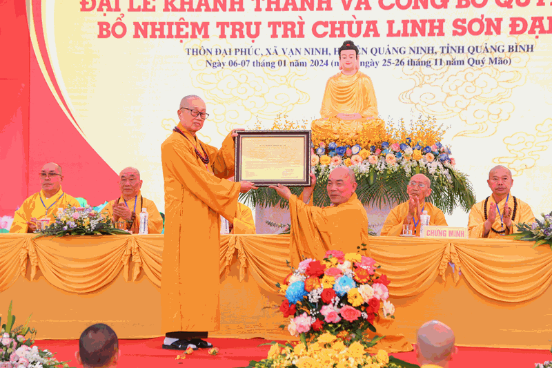 Hòa thượng Thích Tánh Nhiếp – Phó Chủ tịch HĐTS, Phó ban Tăng sự TƯ GHPGVN, Trưởng ban BTS GHPGVN tỉnh Quảng Bình, Trưởng ban tổ chức Đại lễ đã trao quyết định bổ nhiệm trụ trì chùa Linh Sơn Đại Phúc của Ban Trị sự GHPGVN tỉnh Quảng Bình đến Thượng tọa Thích Phương Đạt – Ủy viên HĐTS TƯ GHPGVN, Phó Trưởng ban Thường trực BTS GHPGVN tỉnh Quảng Bình.