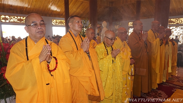 Theo đó, toàn thể chư tôn đức, đại biểu quan khách và Phật tử vân tập tại chánh điện, cùng làm lễ gia trì tâm tượng, khai nguyện ước mong, chúc phúc cho đạo pháp trường tồn, nguyện cầu thế giới hòa bình, chúng sinh sống an lành, hạnh phúc.