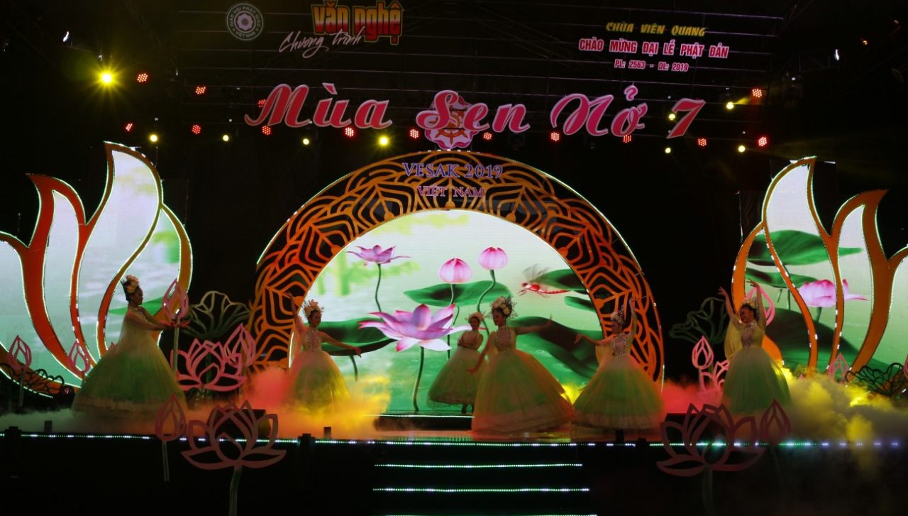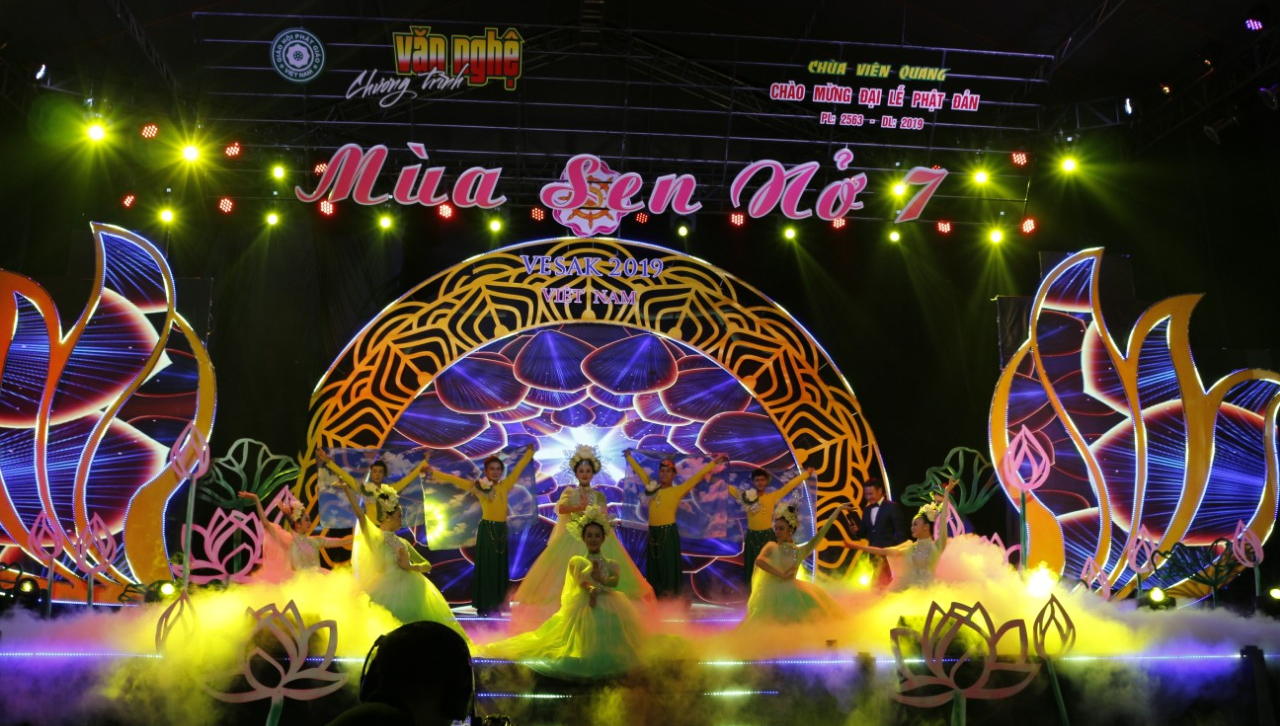 Tối cùng ngày, tại chùa Viên Quang đã diễn ra đêm văn nghệ kính mừng Đại lễ Phật Đản, chủ đề “Mùa Sen Nở 7” với sự tham gia của các ngôi sao ca nhạc trong nước và hải ngoại: Ca sĩ Quang Lê, Ca sĩ Chế Thanh, Hoa hậu Hương Giang,….