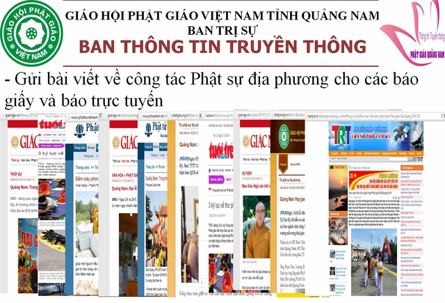 Đặc biệt, thực hiện thành công Bản tin Phật Giáo Quảng Nam QCB bằng video qua 5 số, được đăng tải trên kênh Truyền thông Phật giáo Quảng Nam viết tắt là: QCB (Quảng Nam – Communications – Buddhism) tại Website: Phatgiaoquangnam.vn, đã nhận được sự quan tâm khích lệ của quý độc giả trong và ngoài tỉnh.