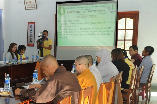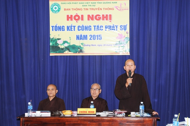 Chủ tọa hội nghị ĐĐ.Thích Viên Hải, Trưởng ban TTTT PG tỉnh Quảng Nam phát biểu khai mạc cho biết; Nhờ vào sự chỉ đạo kịp thời của Thường trực BTS PG tỉnh cũng như sự nhiệt tâm của mỗi thành viên, ban TTTT đã đạt được những thành quả đáng kể trong năm 2015.