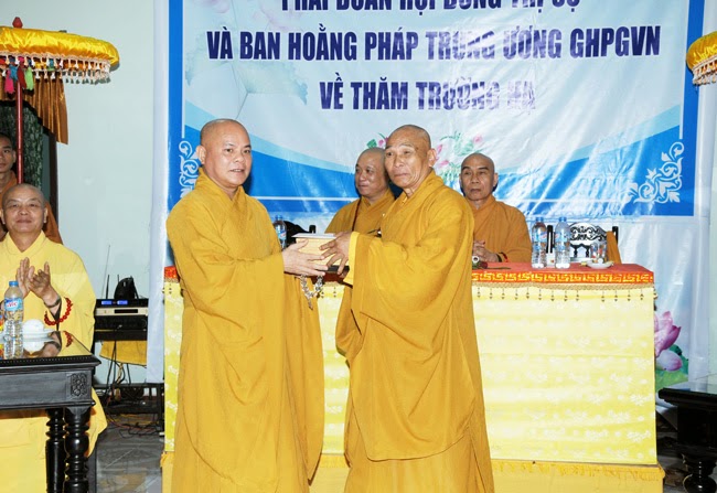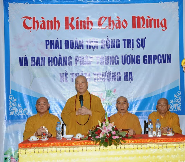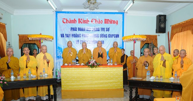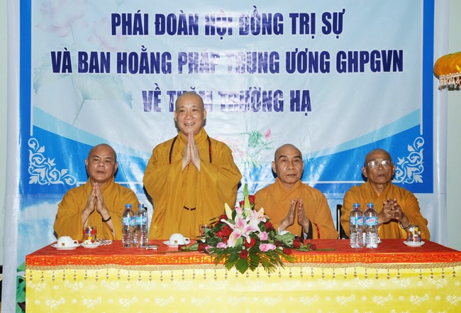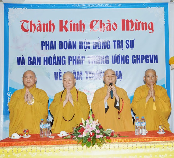 Quang lâm chứng minh: Về phía lãnh đạo Trung ương có HT Thích Bảo Nghiêm, PCT HĐTS, Trưởng ban Hoằng pháp Trung ương GHPGVN và Chư tôn đức lãnh đạo GH TW, Thường trực ban Hoằng pháp TW GHPGVN đồng tháp tùng.