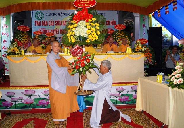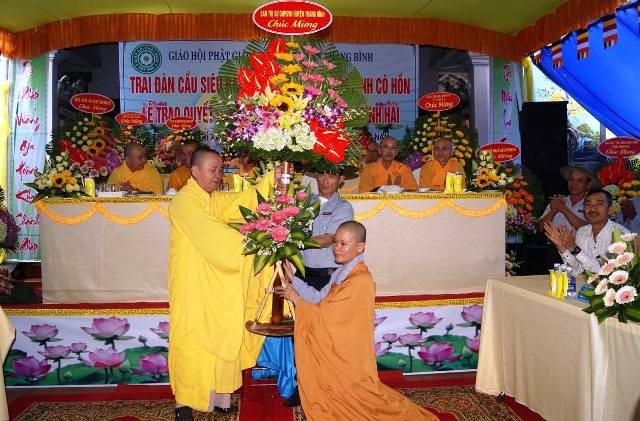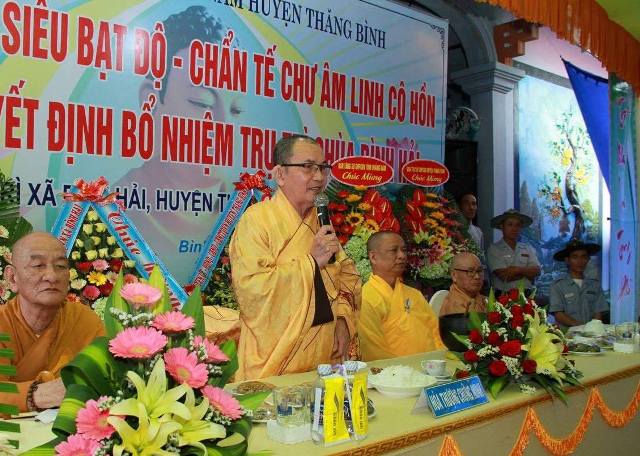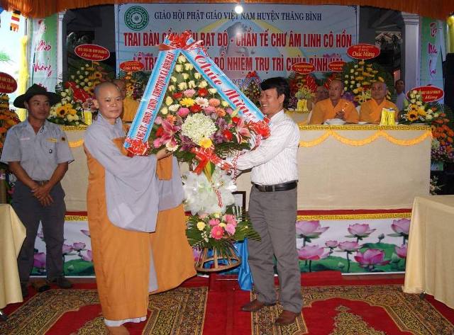 Đại diện các cấp chính quyền ông Trần Tấn Can, Chủ tịch UBMTTQVN xã Bình Hải phát biểu, đánh giá cao tinh thần phụng sự đóng góp tích cực cho xã hội trong thời gian qua của Sư cô tân trụ trì chùa Bình Hải. Ông mong muốn sau khi tiếp nhận quản lý ngôi chùa Sư cô sẽ có phương hướng phát triển, hướng dẫn đồng bào phật tử tại địa phương tu tập ngày một tốt hơn, cũng như tham gia nhiều công tác từ thiện xã hội làm tốt đạo đẹp đời.