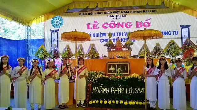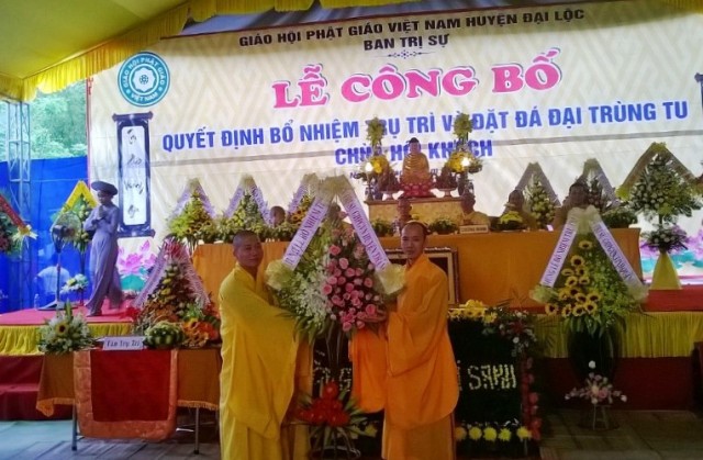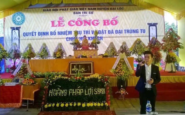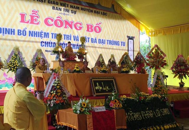 Thay mặt BTC, ĐĐ.Thích Thắng Thiện phát biểu khai mạc, ĐĐ.Thích Viên Quán, Phó thư ký BTS PG tỉnh Quảng Nam công bố quyết định bổ nhiệm ĐĐ.Thích Phước Niệm làm trụ trì chùa Hội Khách.