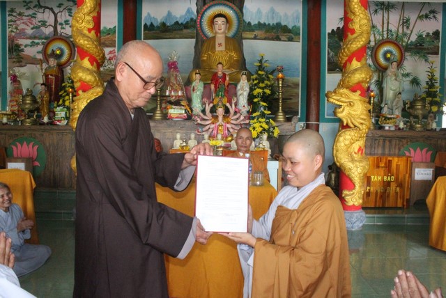 Tại buổi lễ, ĐĐ.Thích Viên Quán, Phó thư ký BTS PG tỉnh đã công bố quyết định số 160 về việc bổ nhiệm trụ trì cho SC.Thích nữ Đồng Châu do Đức trưởng lão HT.Thích Thiện Duyên, Phó Chủ tịch HĐTS, Trưởng BTS GHPGVN tỉnh Quảng Nam đã ấn ký. ĐĐ.Thích Giải Quảng đã trao quyết định đến Sư cô tân trụ trì.