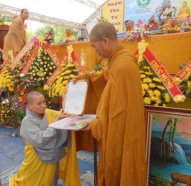 Đối trước Tam bảo, Sư cô tân trụ trì đã dâng lời phát nguyện làm trọn bổn phận của người đệ tử Phật, của một công dân, sống tốt đời, đẹp đạo.