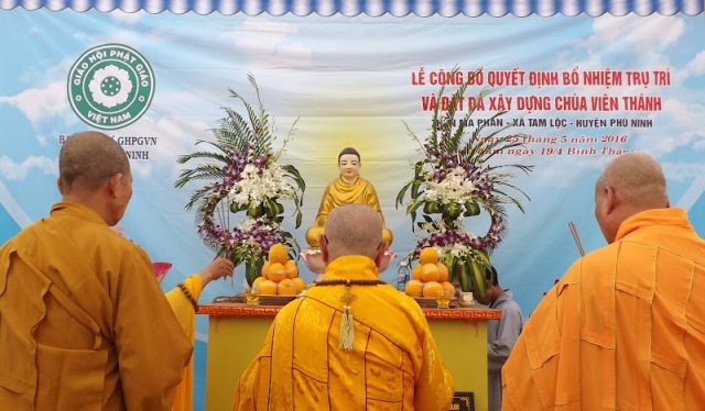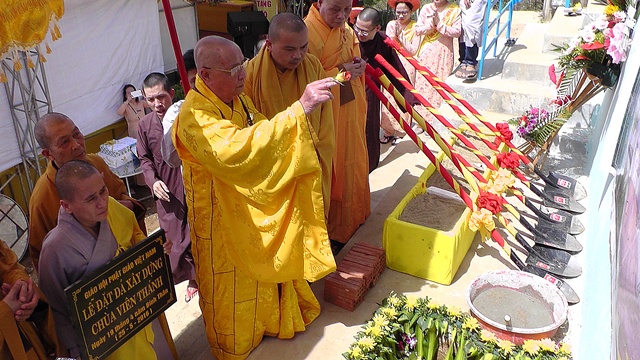 Sau lễ công bố quyết định bổ nhiệm trụ trì, nghi thức động thổ, khởi công xây dựng lại chùa Viên Thánh đã được tiến hành trang nghiêm, HT.Thích Thiện Duyên, Thành viên HĐCM, Phó Chủ tịch HĐTS, Trưởng BTS GHPGVN tỉnh Quảng Nam đã đặt viên đá đầu tiên xây dựng.