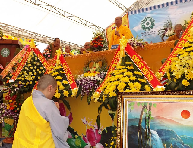 Thay mặt Thường trực BTS PG tỉnh, TT.Thích Phước Minh ban đạo từ tán thán công đức của chư tôn đức trong BTS PG huyện Phú Ninh đã làm tốt công tác mà BTS PG tỉnh giao phó; tiếp tục khôi phục lại những cơ sở của Giáo hội bị chiến tranh tàn phá như: chùa Ngọc Tú (xã Tam Dân)… Thượng tọa cũng gởi lời cảm ơn đến các cấp lãnh đạo chính quyền tạo nhiều điều kiện cho Phật giáo huyện Phú Ninh phát triển trong thời gian qua. Đồng thời, Thượng tọa có lời sách tấn Sư cô tân trụ trì phải nhận lãnh và hoàn thành trách nhiệm mà Giáo hội giao phó, làm cho đạo pháp tại nơi đây ngày càng hưng thịnh, mạng mạch Phật Pháp được hiển hưng, được như vậy mới xứng đáng là Thích tử Như Lai.
