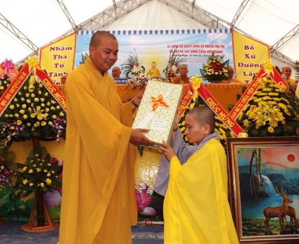 Tại buổi lễ, TT.Thích Giải Quảng, đã công bố quyết định của Hòa thượng Trưởng BTS PG tỉnh; HT.Thích Thiện Thành, trao quyết định và tặng hoa đến Sư cô Thanh Hiếu.