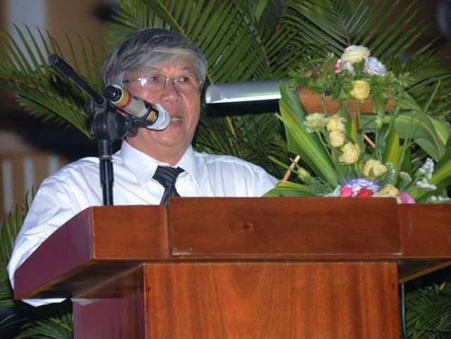 Ông Nguyễn Ngọc Quang và ông Lê Văn Lai thay mặt lãnh đạo chính quyền phát biểu, đọc thư chúc mừng của UBMTTQVN tỉnh và gởi đến lẵng hoa chúc mừng Đại Lễ.