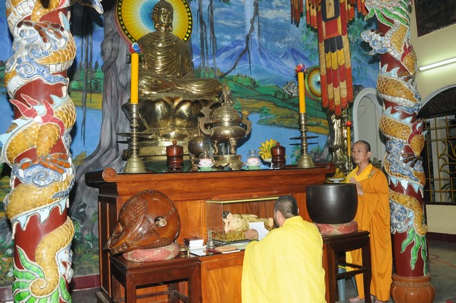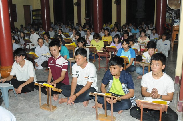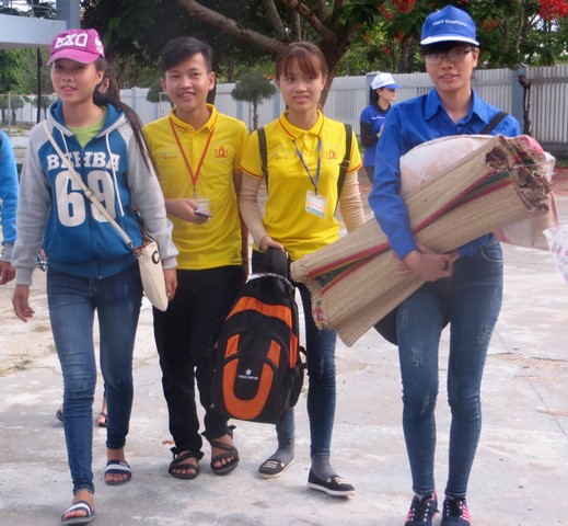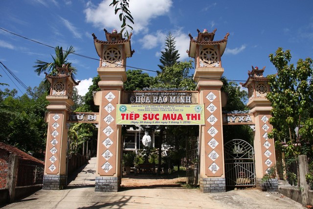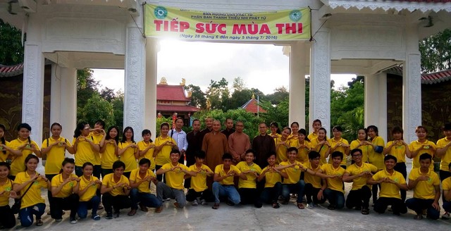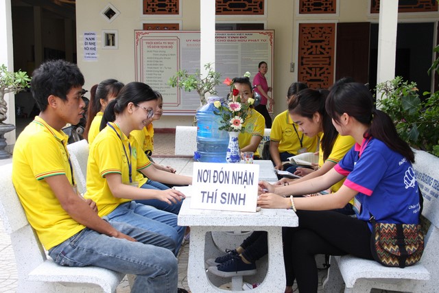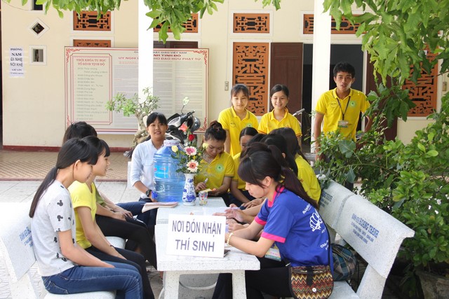 Chùa Bửu Đức (phường Tân Thạnh), nơi lưu trú và ăn ở cho hơn 200 TNV. Tại đây, các TNV sẽ được BTC phân công từng công việc cụ thể, chia từng đội, nhóm đến các điểm thi và các chùa nơi có thí sinh đang cư trú để hướng dẫn, tư vấn và phục vụ đưa đón các thí sinh đến điểm thi.