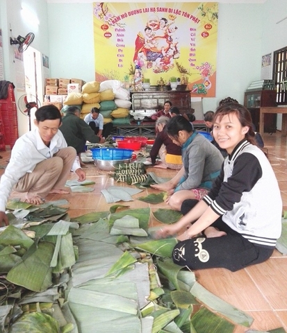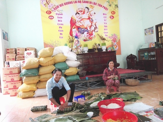 Trên tinh thần “nhường cơm, sẻ áo” “lá lành đùm lá rách”, ĐĐ.Thích Viên Phước cùng quý đạo hữu phật tử, các em thanh thiếu nhi phật tử,… phát tâm gói từng yêu thương vào những đòn bánh tét, với ý nghĩa mang những tấm lòng đến những hộ gia đình khó khăn để đem lại cái tết ấm cúng, tràn đầy.