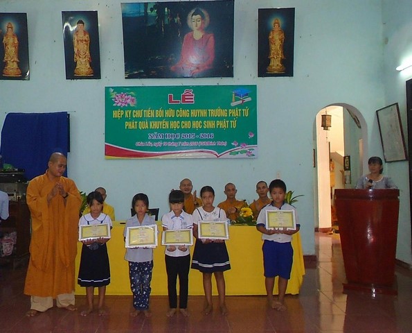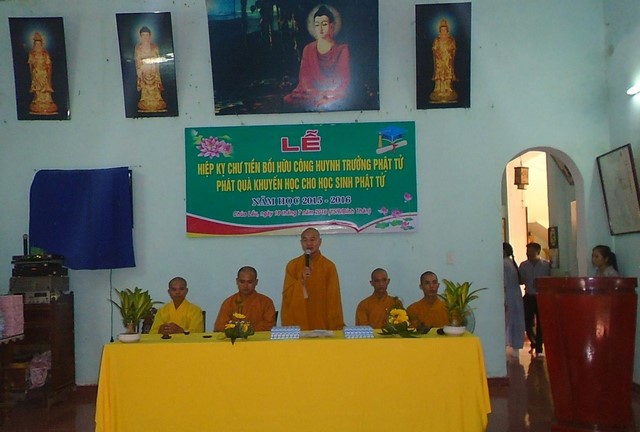 Tham dự trao quà khuyến học còn có chư tôn đức, đại diện khách mời UBND, UBMT, Hiệu trưởng các trường Tiểu học, Trung học cơ sở trên địa bàn xã Duy trinh; quý đạo hữu Phật tử chùa Lầu và hơn 180 học sinh Phật tử tham dự.