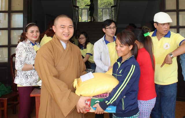 Dịp này, đoàn từ thiện còn đến thăm và cúng dường chùa Long Hoa (xã Bình Lâm, huyện Hiệp Đức).