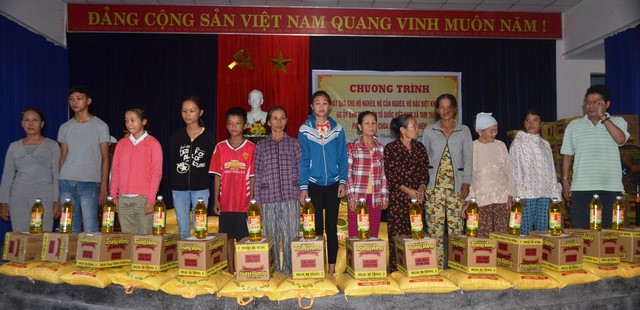 Đoàn đã trao tặng 161 phần quà gồm gạo, mì gói, dầu ăn và phong bì tiền mặt, mỗi phần 250 ngàn đồng.