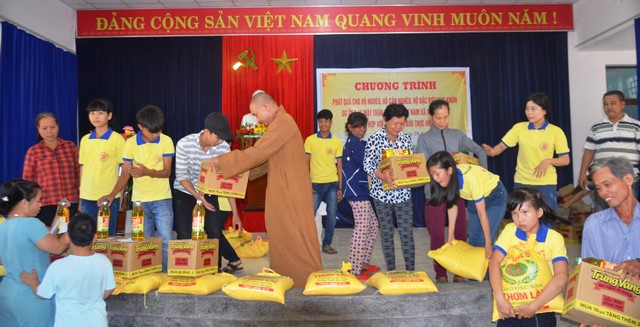 Tại buổi phát quà, ĐĐ.Thích Viên Hải, trụ trì chùa Linh Bửu (xã Tam Thăng) đã nói lên tình cảm của người Phật tử và các bạn bè hảo tâm gần xa, mong muốn chia sẻ với bà con nghèo địa phương, động viên bà con vượt qua khó khăn.