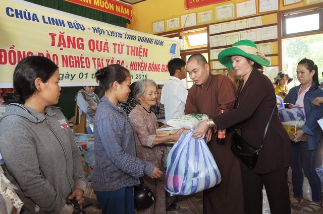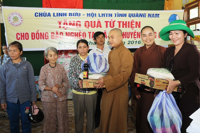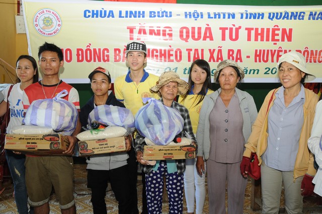 Đoàn đã trao tặng 120 phần quà gồm gạo, mì gói, tiền mặt và nhiều nhu yếu phẩm khác, mỗi phần 250 ngàn đồng. Tổng số tiền của chuyến từ thiện 30 triệu đồng. Dịp này, đoàn còn đến cúng dường chùa Đông An, cơ sở Phật giáo đầu tiên tại huyện Đông Giang.