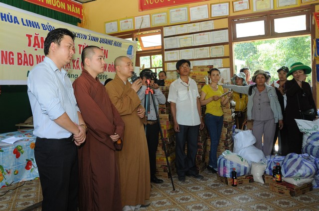 Thay mặt đoàn, ĐĐ.Thích Viên Hải đã nói lên tình cảm của người phật tử và các bạn bè hão tâm gần xa, mong muốn chia sẻ với bà con nghèo địa phương, động viên bà con vượt qua khó khăn.