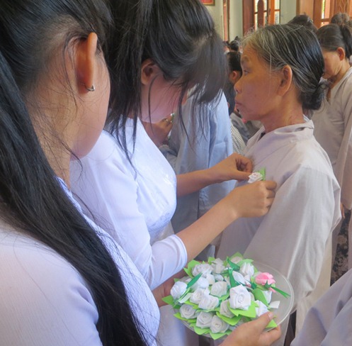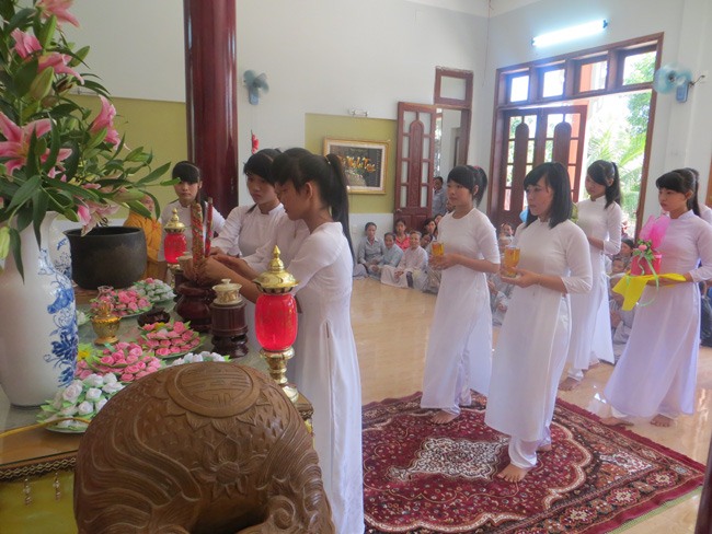 Chương trình lễ Vu Lan với các nghi thức dâng lục cúng dường, diễn đọc ý nghĩa lễ Vu Lan, cảm niệm về cha mẹ, nghi thức bông hồng cài áo… Nghi thức bông hồng cài áo đã làm cho phật tử tham dự nước mắt vỡ òa khi nhớ nghĩ đến công ơn dưỡng dục như trời biển của cha, của mẹ. Ai trong mỗi chúng ta sinh ra trong cõi đời này đều có cha và mẹ điều đó thật may mắn và diễm phúc biết bao. Được sự ấp ủ yêu thương chúng ta được truyền thừa hơi ấm từ cha lại được dưỡng nuôi bằng dòng sữa thơm lành của mẹ. Cha cho ta nghị lực sức mạnh và niềm tin để ta vững bước vào đời. Mẹ viết thêm cho ta tình thương yêu sự hòa ái vào mạch sống tương lai…