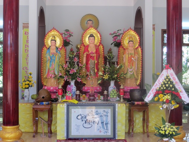 Quang lâm chứng dự có ĐĐ.Thích Viên Hải – Trụ trì chùa Linh Bửu; Bà Nguyễn Thị Thanh – Chủ Tịch UBMTTQVN xã Tam Thăng; Ông Huỳnh Kim Ta – Trưởng Ban Nhân Dân thôn Thạch Tân, cùng đông đảo phật tử địa phương về tham dự.