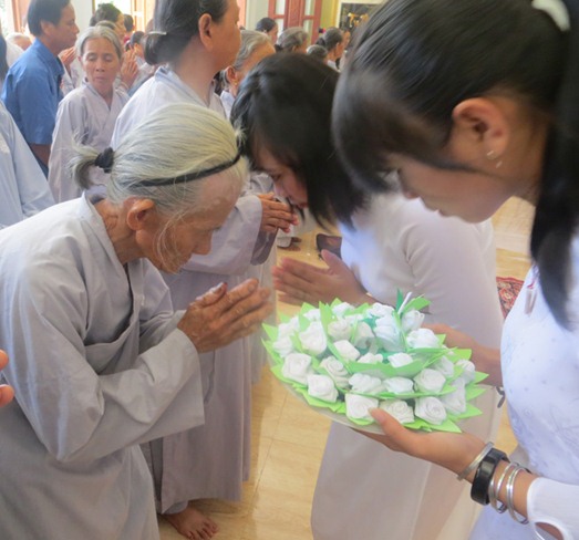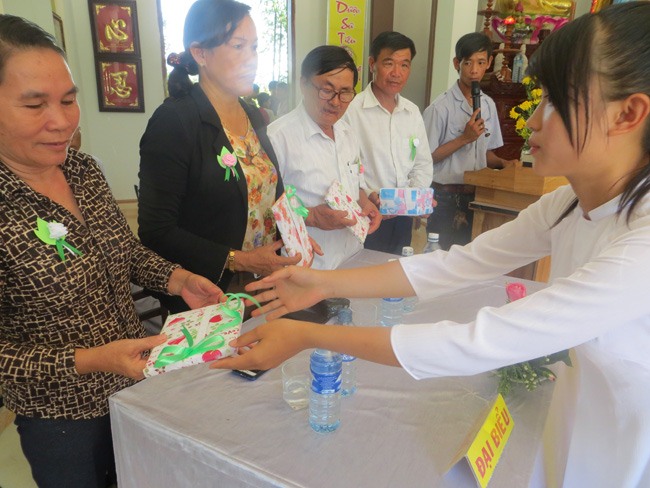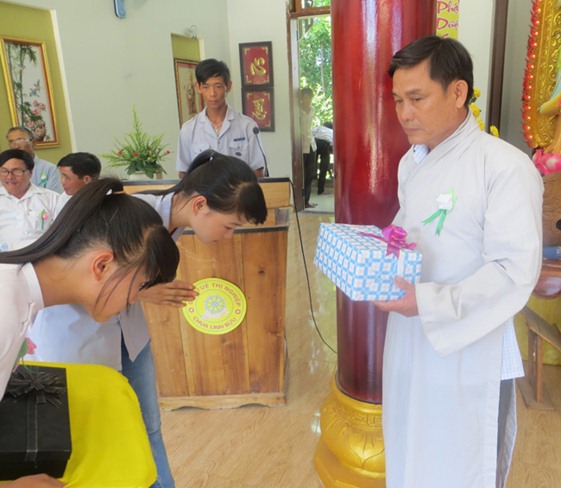 Sau phần dâng phẩm vật cúng dường lên chư tôn đức, cũng như dâng quà lên 2 đấng sinh thành cha và mẹ của mình do các em đoàn sinh phật tử chùa Linh Bửu thực hiện.