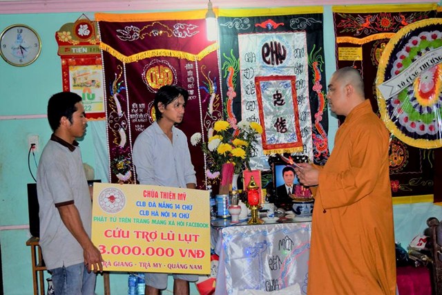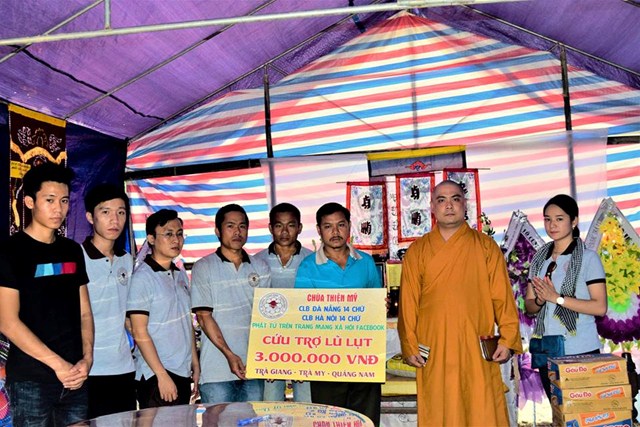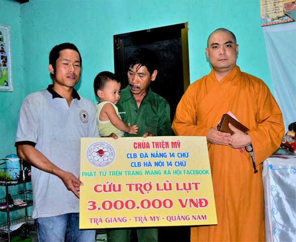 Trên tinh thần từ bi của người con Phật, Đại Đức Thích Lệ Minh (Trụ trì CHÙA THIỆN MỸ, quận 5, TP.HCM) phối nối kết cùng CLB ĐÀ NẴNG 14 CHỮ, CLB HÀ NỘI 14 CHỮ, Đoàn “VIỆT NAM QUÊ HƯƠNG TÔI 6”, quý Phật tử trên trang mạng xã hội Facebook phát tâm hùn phước cứu trợ đồng bào lũ lụt tại huyện Bắc Trà My, tỉnh Quảng Nam với tổng kinh phí : 197.000.000 VNĐ.