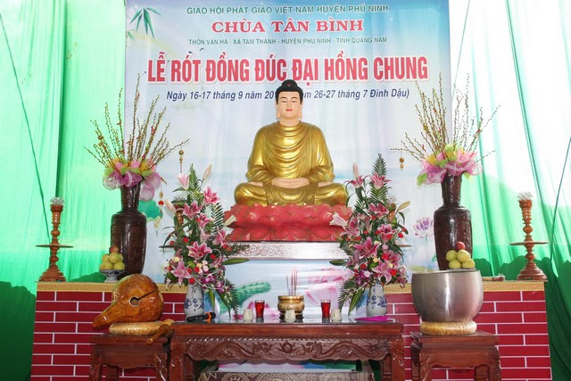 Quang lâm chứng minh và chú nguyện có HT.Thích Thiện Thành, TT.Thích Phước Minh – đồng UV HĐTS GHPGVN, Phó trưởng BTS PG tỉnh Quảng Nam; ĐĐ.Thích Viên Trừng, Phó thư ký kiêm CVP BTS PG tỉnh Quảng Nam, Trưởng BTS PG huyện Phú Ninh cùng chư tôn đức tăng – ni trụ trì các chùa lân cận và đông đảo phật tử về tham dự.