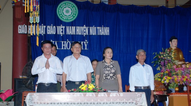 Về phía chính quyền có ông Lê Thanh Luận, PNV huyện Núi Thành; ông Nguyễn Tấn Nam, Phó Chủ tịch UBND xã Tam Nghĩa; bà Đinh Thị Hạnh, Chủ tịch UBMTTQVN xã cùng đại diện các ban ngành địa phương sở tại, quý Phật tử các nhà hão tâm.