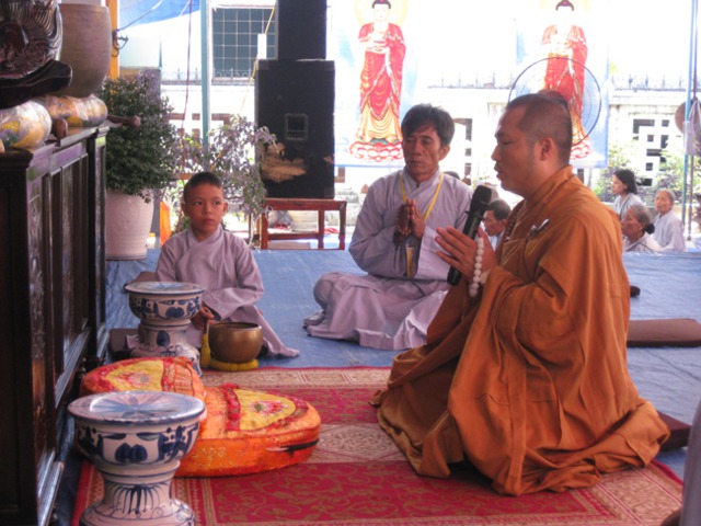 Khóa tu diễn ra giữa lúc Miền Trung đang vào mùa cực nóng, hàng phật tử phải ngồi dưới mái vòm được che bằng bạt nên việc tu học trở ngại vô cùng. Tuy nhiên với tâm nguyện tha thiết, với hạnh nguyện chuyên tu, vượt lên trên tất cả đồng hướng đến sự nhất tâm an lạc tối thượng trong những ngày tu hành.  Trong khóa tu lần này BTC đã thành tâm cung thỉnh đại đức Thích Pháp Đăng –  PBTS tỉnh Đồng Nai – UVBHP – kiêm TBTS huyện Thống Nhất Tỉnh Đồng Nai, trụ trì Chùa Huệ Viễn đã thân lâm thuyết giảng với đề tài “ Khuyên người niệm Phật”. Qua bài pháp thoại đại đức giảng sư đã truyền tải đến đại chúng thông điệp “mỗi hành giả phải nhất chuyên tâm niệm Phật, ngoài bản thân còn phải khuyến kích người thân về chùa tu hành bởi đây là cửa ngỏ để giải thoát sự khổ đau và tìm đến bến bờ an vui. Niệm Phật,miệng thì niệm, tai phải nghe rõ ràng, có như thế tâm thể mới hợp nhất, khi đã hợp nhất thì bất loạn bất động đến nhất tâm bất loạn”
