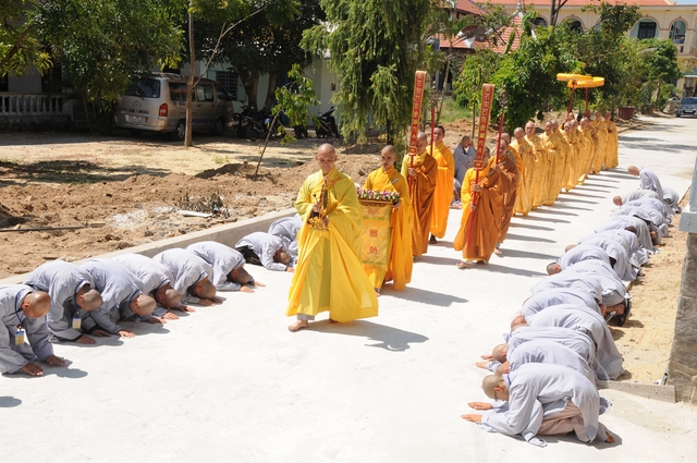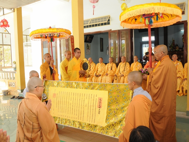 Đúng 09h00, nghi thức cung an chức sự Hội đồng giới sư, dẫn thỉnh sư, khai kinh bạch Phật, kiết tiểu giới trường được diễn ra trang nghiêm, thanh tịnh, kỳ thi khảo hạch tuyển chọn chất lượng giới tử cũng được nghiêm mật diễn ra ngay sau đó.