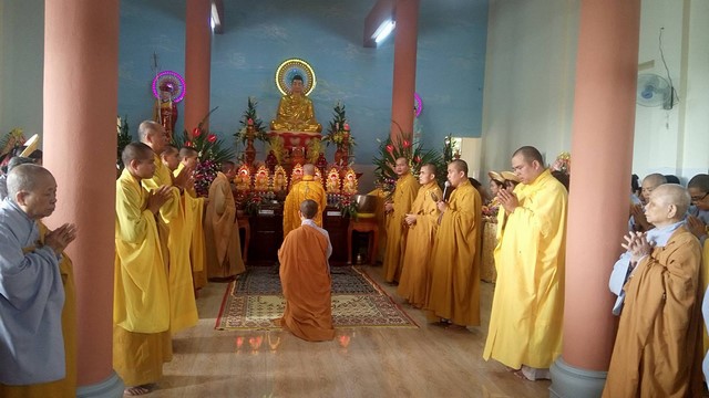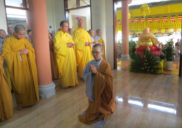 Tại buổi lễ, sư cô tân trụ trì chùa Chánh Lộc quỳ trước chư tôn Giáo phẩm chứng minh nhận lãnh trách nhiệm mà Giáo hội giao phó và phát nguyện thực hành đúng theo hiến chương Giáo hội và Pháp luật nhà nước.