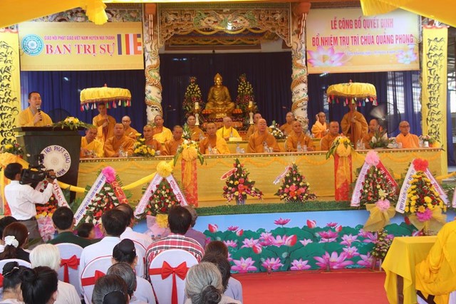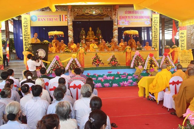 Thượng Toạ Thích Giải Quảng, Phó ban trị sự kiêm Chánh thư ký thay mặt thường trực BTS và Hoà Thượng Trưởng ban tuyên đọc quyết định. Đại Đức Thích Quảng Minh chính thức đăng quang ngôi vị trì trì từ đây. Đại Đức đã đối trước Chư tôn đức và toà thể đạo tràng phát nguyện thọ lãnh trách nhiệm mà Giáo hội đã tin tưởng giao phó, lời phát nguyện của Đại đức vang lên văng vẵng hùng lực như con sư tử chúa nay đã trưởng thành với lời phát nguyện như sau: “Con là Sứ giả Như Lai xin phát nguyện: Suốt đời hiến thân cho đạo để phụng sự Đạo Pháp và phục vụ chúng sanh. Chỗ nào chúng sanh mời con đến, chỗ nào Đạo pháp cần con đi. Không kể gian lao, chẳng từ khó nhọc” quyết tâm làm trọn nhiệm vụ cao cả của một sứ giả Như lai, tuân thủ giới luật thọ trì để xứng đáng là người xuất gia, không làm tổn hại đến thanh danh của Giáo hội.
