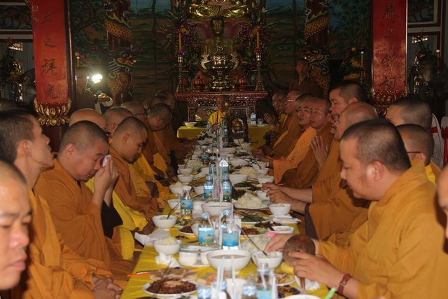 Sau buổi lễ Đại đức tân Trụ Trì cùng với quý vị Ban hộ tự, Phật tử phát tâm cúng dường Trai tăng dâng lên mười phương Chư Phật và hiện tiền Đại Đức chúng tăng.