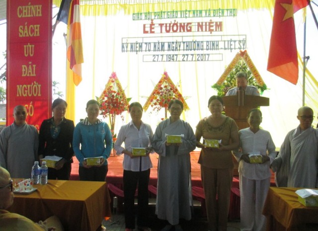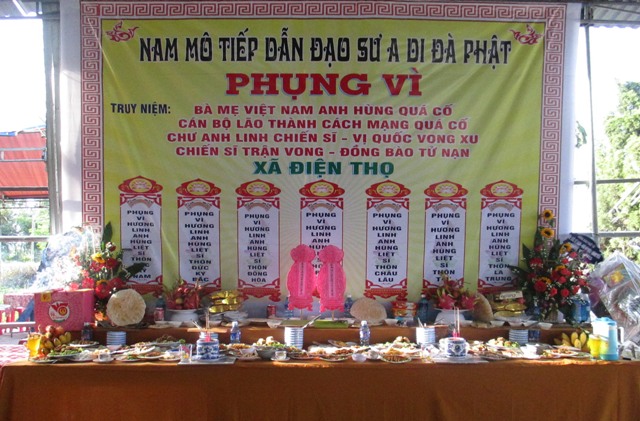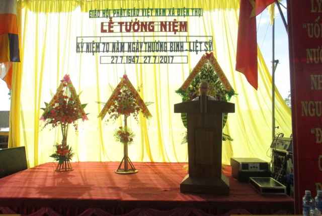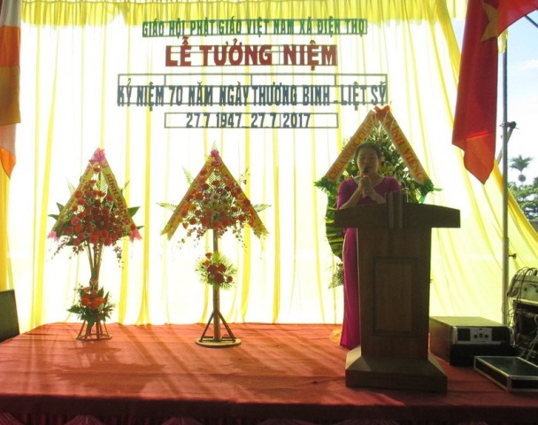 Tại buổi lễ, SC.Thích Nữ Thông Tuệ, Trưởng ban tổ chức, đọc diễn văn khai mạc; SC.Thích Nữ Đạo Thành đọc lời tưởng niệm các anh hùng liệt sĩ; bà Phan thị thu sương, Phó chủ tịch UBND xã Điện Thọ phát biểu tri ân.