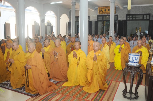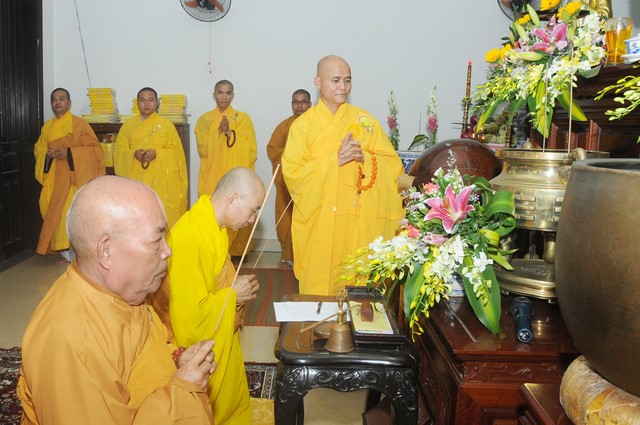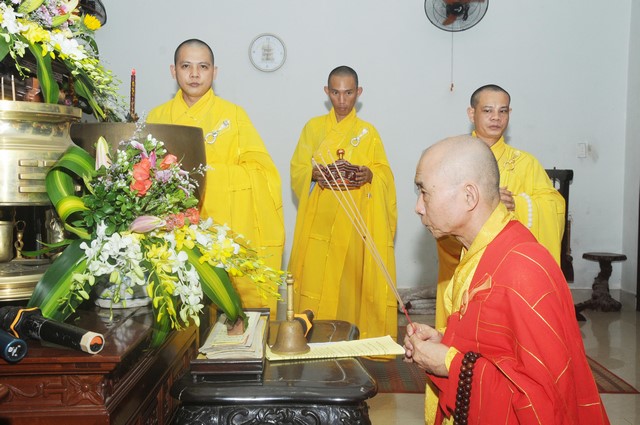 Trước Giác linh đài cố Đại lão Hòa thượng, chư tôn Giáo phẩm, môn đồ pháp quyến, Phật tử đã dâng nén tâm hương nhất tâm đảnh lễ, cầu nguyện, tưởng nhớ công đức của cố Đại lão Hòa thượng. Toàn thể đại chúng nhất tâm đồng niệm thời kinh Bát Nhã cúng dường, thể hiện tình pháp lữ trong Chánh pháp, tình linh sơn trong sáng, nhất tâm nguyện cầu nguyện Giác linh cố Đại lão Hòa thượng cao đăng Phật quốc.