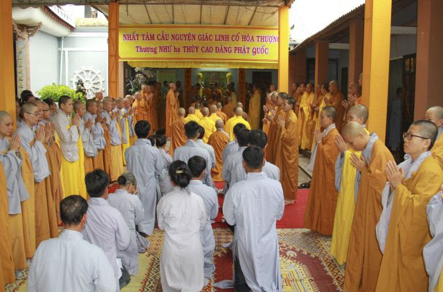 Quang lâm chứng minh và tác lễ cầu nguyện có HT.Thích Như Thọ, Thành viên HĐCM GHPGVN; HT.Thích Hạnh Niệm, UV HĐTS GHPGVN, Phó ban Thường trực BTS kiêm Trưởng ban Tăng sự PG tỉnh Quảng Nam; ĐĐ.Thích Giải Quảng, Phó ban kiêm Chánh Thư ký BTS PG tỉnh, Trưởng BTS PG thị xã Điện Bàn; Chư tôn Hòa thượng, Thượng tọa, chư Tăng Ni các đạo tràng an cư cùng đông đảo đạo hữu phật tử các giới, đồng nhất tâm cầu nguyện Giác linh Hòa thượng cao đăng Phật quốc.