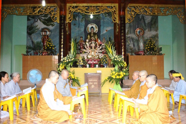 Chiều cùng ngày, chư tôn đức đã cử hành lễ khai kinh bạch Phật và lễ thành phục, thọ tang.