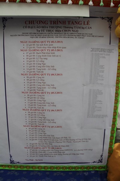 Sáng ngày mai vào lúc 7 h 00 TW GHPGVN sẽ làm lễ tưởng niệm và sau đó, Lễ Tống Kim quang thượng giá nhập Bảo tháp tại khuôn viên Tổ đình. Chúng tôi sẽ tiếp tục cập nhật những thông tin đến với quý vi chi tiết.