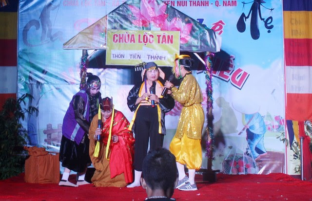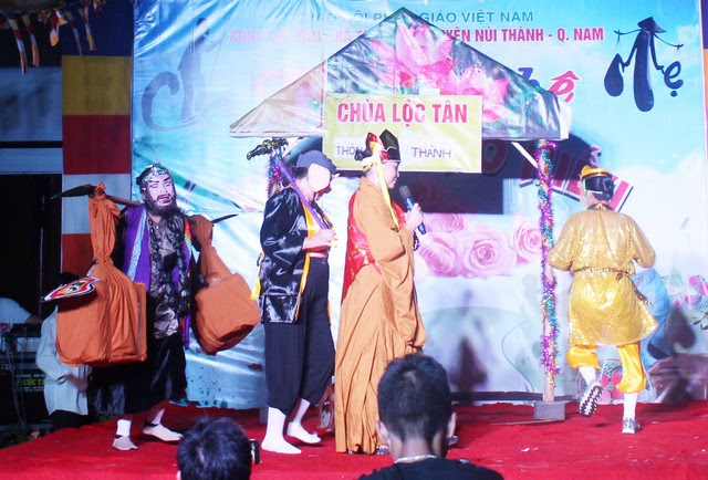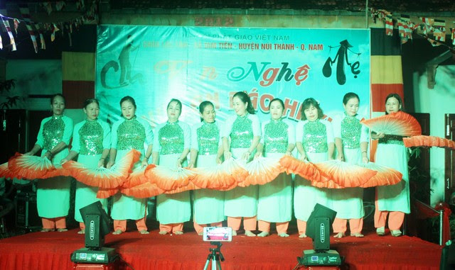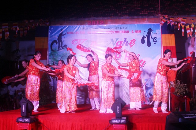 Sau lễ cài hoa hiếu hạnh là chương trình giao lưu văn nghệ với nhiều tiết mục mang đậm nét chùa quê do Phật tử chùa Lộc Tân biểu diễn.